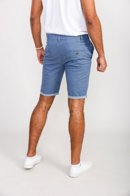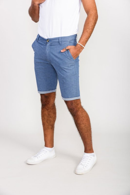 ALDERTON - D555 Stretch Chambray Shorts" are a stylish and comfortable pair of shorts produced by The Duke Clothing Co. These shorts are part of the D555 range, which is known for its fashionable casual wear for men.