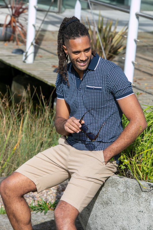 The "COVENTRY-D555 AO Printed Polo Shirt With Jacquard Collar And Ribbed Cuffs" is a modern and stylish offering from The Duke Clothing Co’s D555 collection. Meticulously crafted from premium materials and designed with precision, this polo shirt seamlessly blends cont