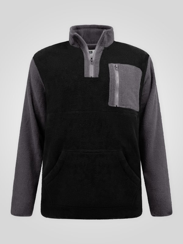 DALY-D555 1/4 Zip Neck Bonded Fleece Sweatshirt With Kangaroo & Chest Pockets