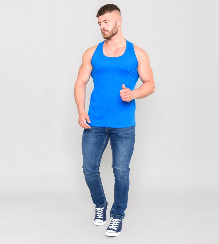 The "FABIO -D555 Basic Muscle Vest" is available in a range of sizes to fit different body types. It can be worn as a basic and practical tank top for any casual occasion or as an undershirt for layering.