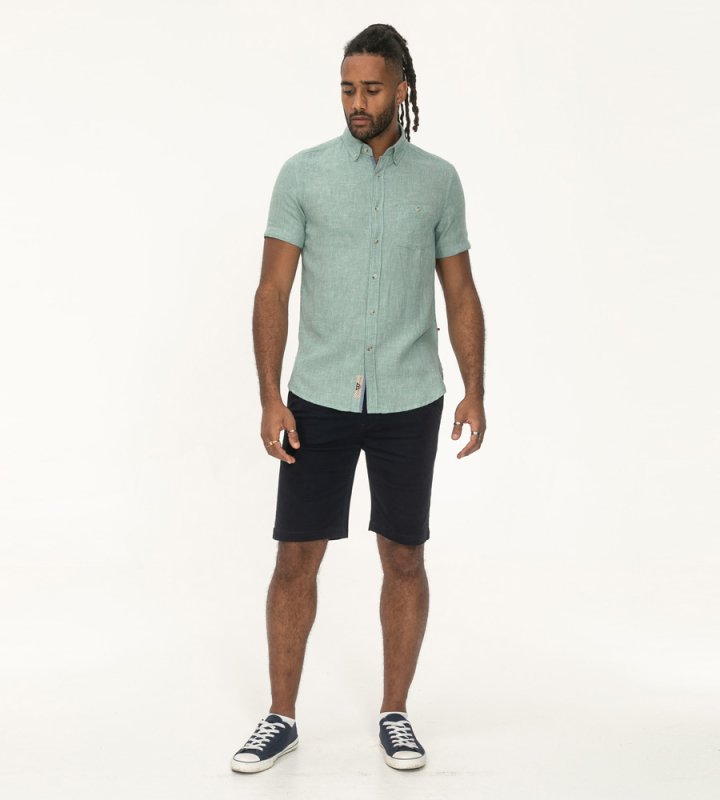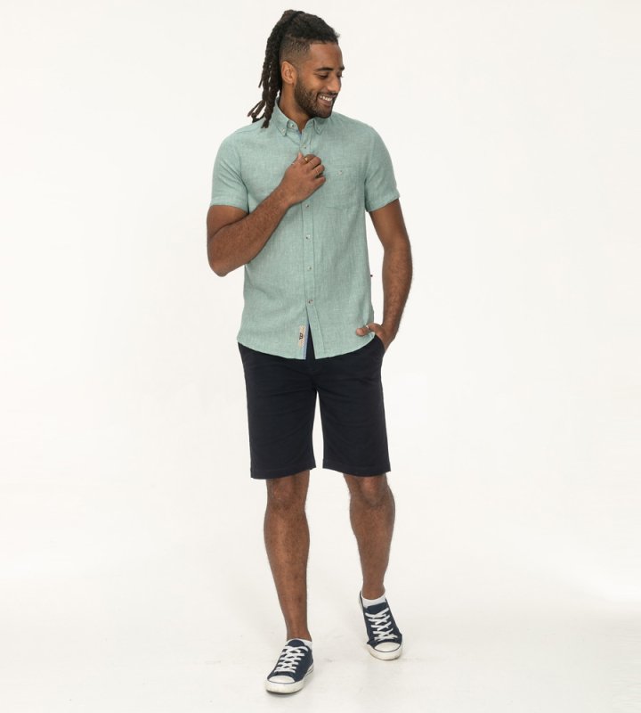 Embrace fresh, airy elegance with the FALMOUTH 2-D555 Mint Linen Mix Short-Sleeve Shirt—a breezy wardrobe staple designed to elevate your warm-weather style. Combining the crisp polish of a button-down collar with the relaxed charm of a chest pocket, this mint-hued shirt blends timeless design with lightweight comfort, perfect for sunny days spent outdoors or casual yet refined occasions.