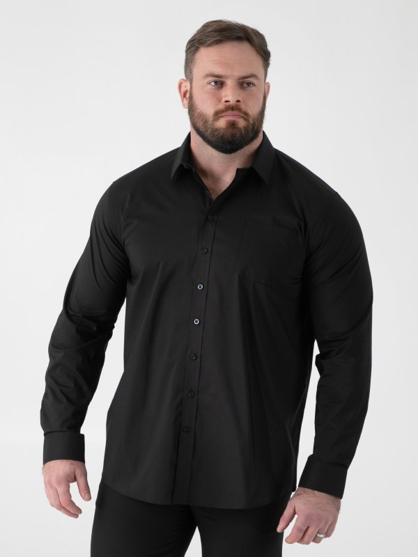 The D555 OLIVER Long Sleeve Stretch Shirt redefines effortless smart dressing for the modern man. Designed in a sleek black finish, it’s crafted from a premium poly-cotton spandex blend that offers ultimate stain resistance, non-iron convenience, and 2-way stretch comfort. This versatile piece ensures you look sharp from morning meetings to evening occasions, with its tailored silhouette, extra cufflink option, and durable, easy-care finish making it a must-have for every wardrobe.