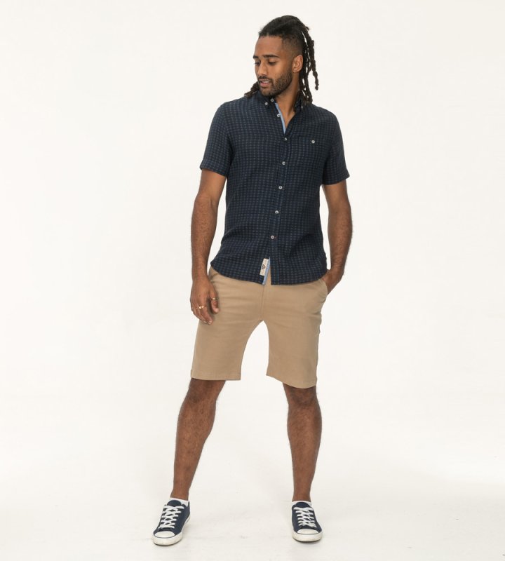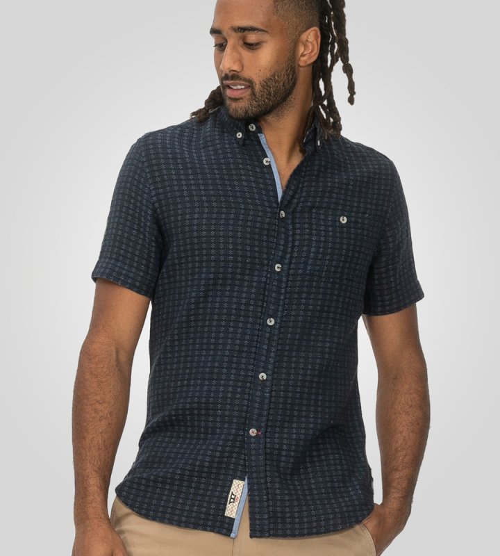 Elevate your casual wardrobe with the PONTEFRACT-D555 Jacquard Linen Mix Short-Sleeve Shirt—a masterclass in textured sophistication and breathable comfort. Designed for those who appreciate refined details, this navy shirt combines the timeless appeal of a button-down collar and functional chest pocket with a subtle Jacquard weave, adding depth and elegance to your everyday style. Perfect for warm-weather adventures or polished-casual occasions, it’s a versatile staple that effortlessly bridges laid-back and luxe.