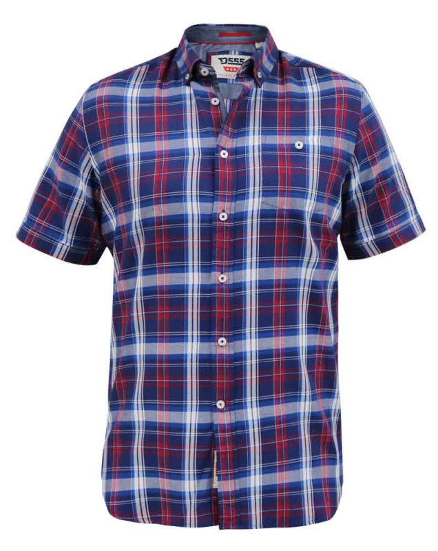 The Duke Clothing Co "PORTLAND-D555 Check Button Down Collar S/S Shirt with Pocket" is a high-quality shirt under the D555 brand. The shirt comes in a blue and red check pattern and is made from 100% cotton, making it soft, comfortable, and breathable.