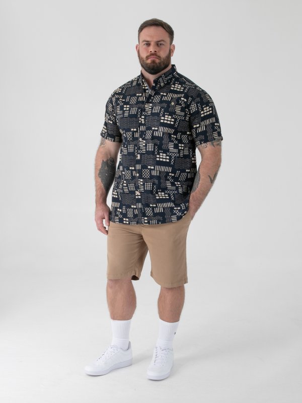 Bring pattern and personality to your wardrobe with the D555 RICK Navy Geometric All-Over Print Short Sleeve Shirt – bold style meets easy comfort. Made from 100% pure cotton, this shirt feels naturally soft, breathable, and cool against the skin, making it perfect for all-day wear. Designed with a button-down collar, short sleeves, and an eye-catching geometric print, it adds a modern edge to any outfit while maintaining a classic D555 fit that flatters big, tall, and regular builds alike.