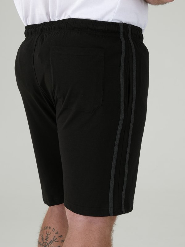 In summary, the Duke Clothing Co "RYAN-D555 Two Pack Elasticated Waist Jersey Short With Side Stripes" is a high-quality and stylish men's short made from a cotton-polyester blend, with 60% cotton and 40% polyester. They come in a pack of two and feature an elasticated waistband with a drawstring, two side pockets, a regular fit, and side stripes. The black/charcoal color combination adds a sleek and modern touch to their classic design, making them a versatile addition to any wardrobe. These shorts are perfect for casual occasions, adding a unique and stylish element to any outfit.