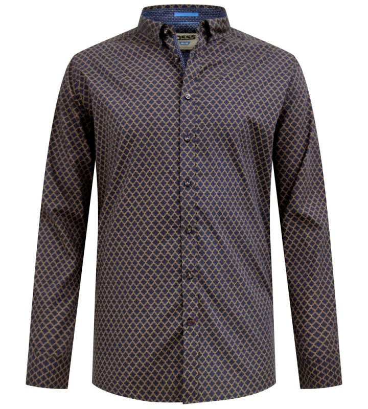 Upgrade your look with the D555 SHEFFIELD Long Sleeve Micro Gold AOP Shirt – the perfect blend of sophistication and everyday wearability!