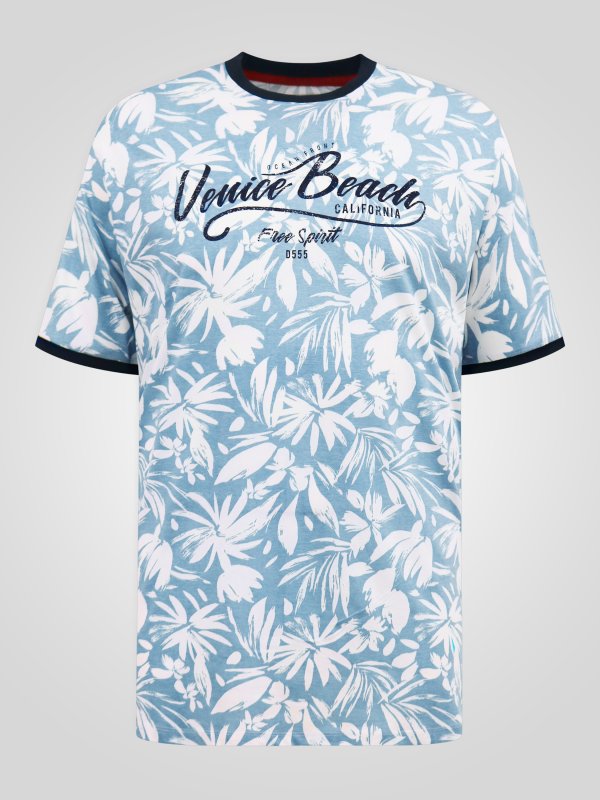 Bring coastal energy to your casual look with the D555 SHOREHAM AO Printed Venice Beach Crew Neck T-Shirt – easy, breezy, and built for everyday comfort. Made from 100 percent pure cotton, this lightweight tee keeps you cool and comfortable all day long. The all-over Venice Beach print captures laid-back Californian style, while the ribbed cuffs and crew neckline add structure and a premium finish. In a vibrant blue colourway, it’s the perfect statement piece for warm-weather days and relaxed weekends.