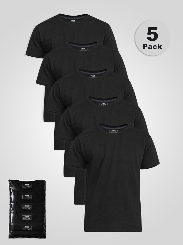 SMARTLY-Black 5 Pack Combed Cotton Crew Neck T-Shirt-3XL