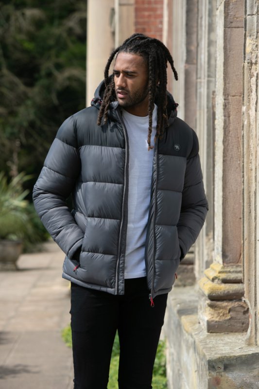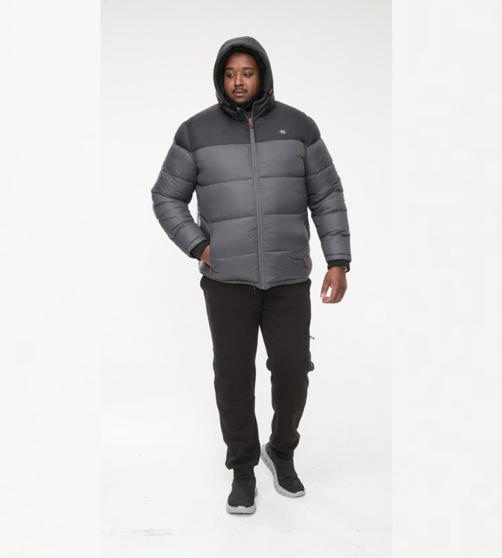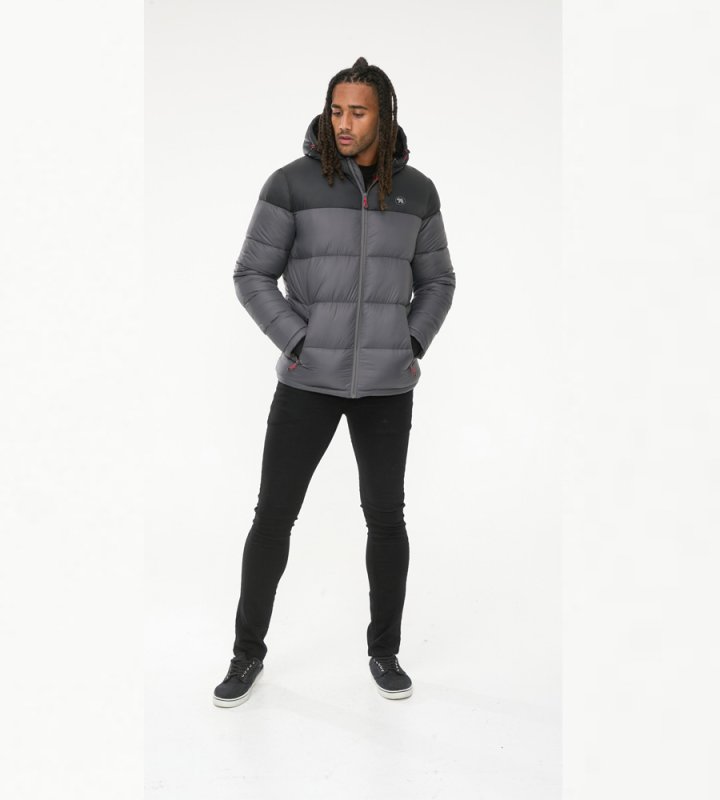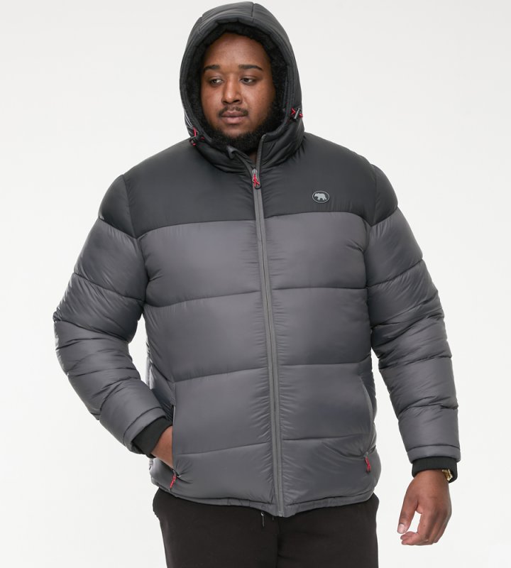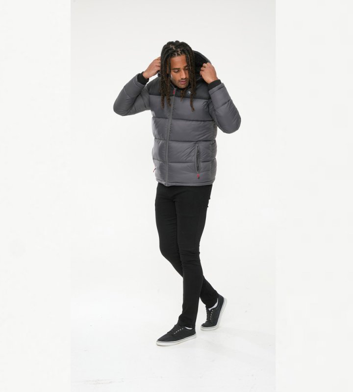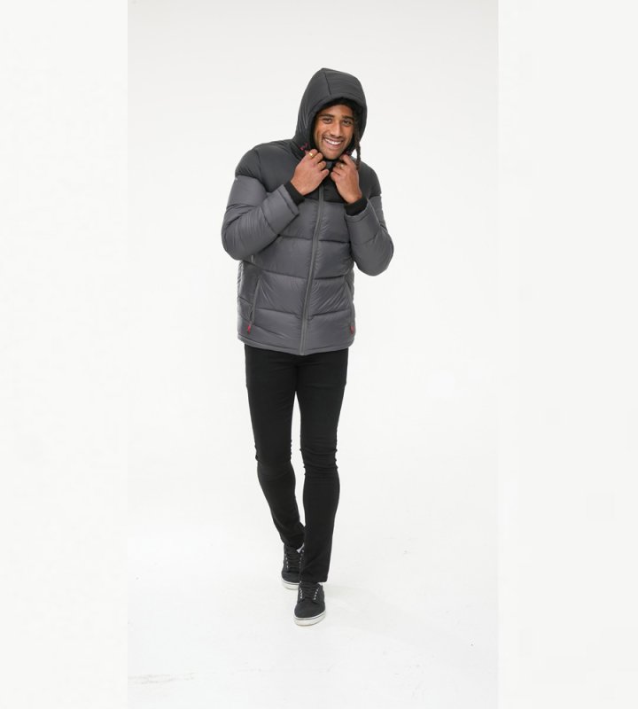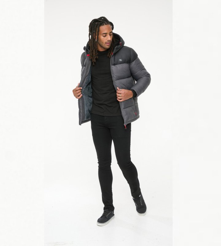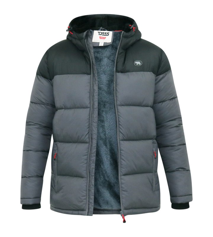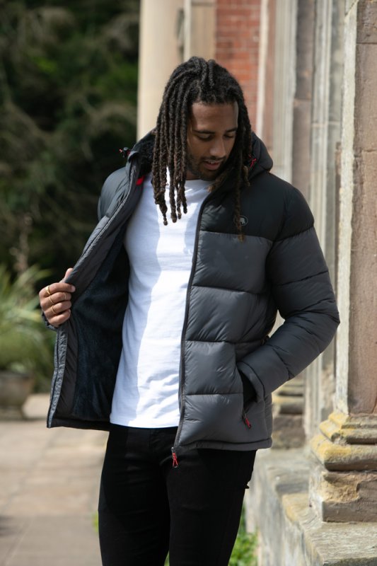 The WORRALL - D555 Quilted Hooded Puffer Jacket is a robust outerwear choice for those cold days. It features a full sherpa lining for exceptional warmth and a quilted nylon exterior in a classic charcoal color for style and substance.