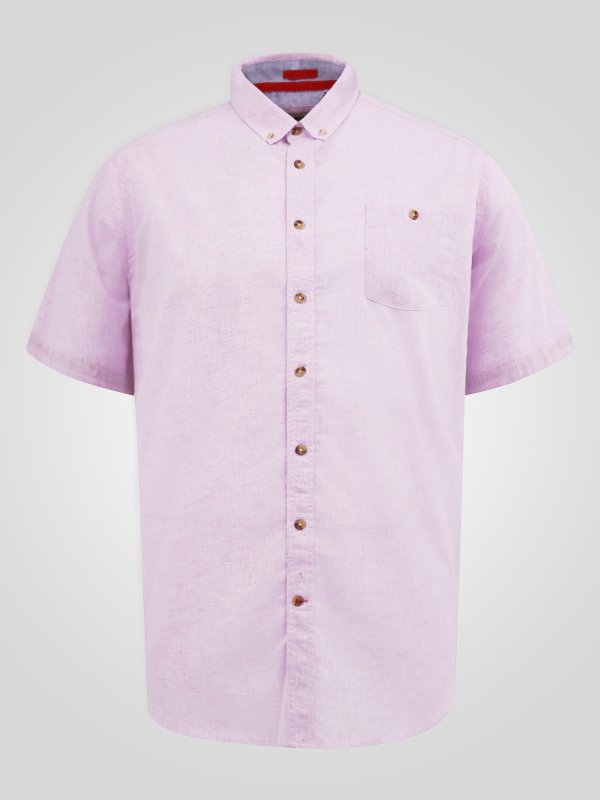 CLARKE 2-D555 Pink Linen Mix S/S Shirt With Button Down Collar & Pocket