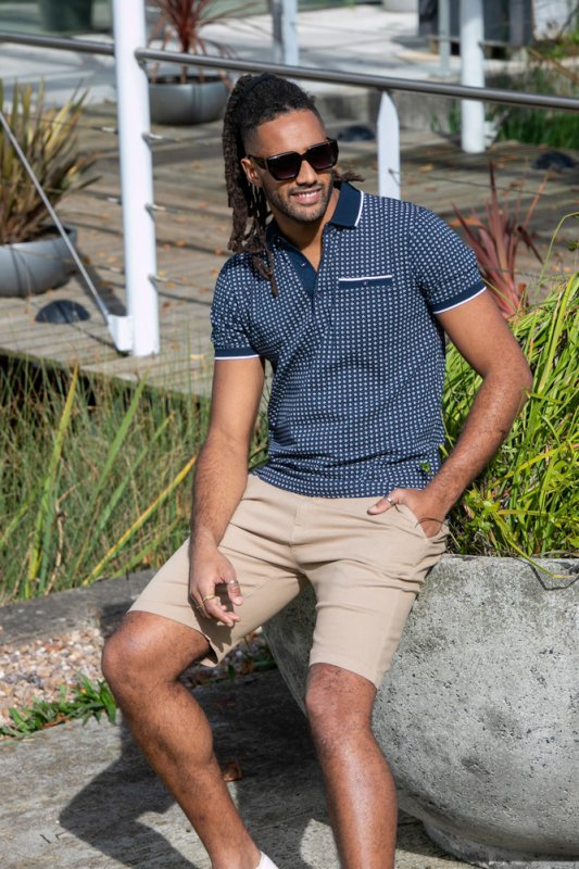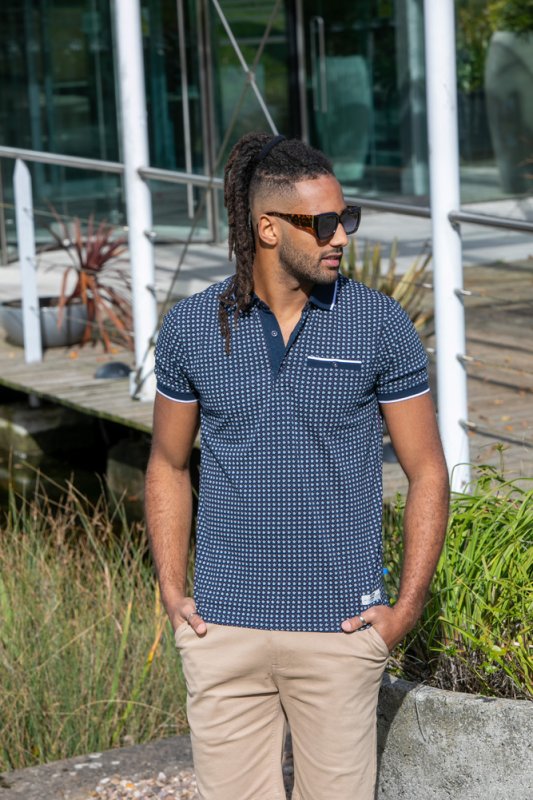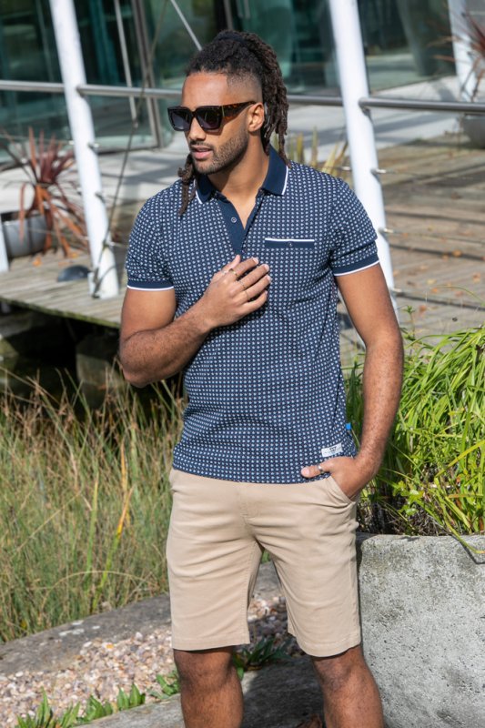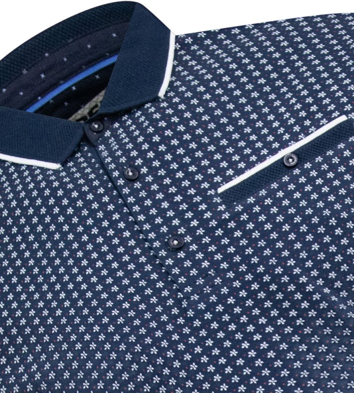 The "COVENTRY-D555 AO Printed Polo Shirt With Jacquard Collar And Ribbed Cuffs" is a modern and stylish offering from The Duke Clothing Co’s D555 collection. Meticulously crafted from premium materials and designed with precision, this polo shirt seamlessly blends cont