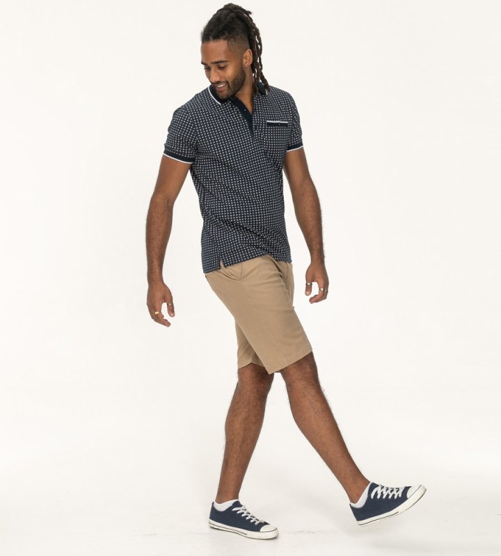 COVENTRY-D555 Ao Printed Polo Shirt With Jacquard Collar And Ribbed Cuffs