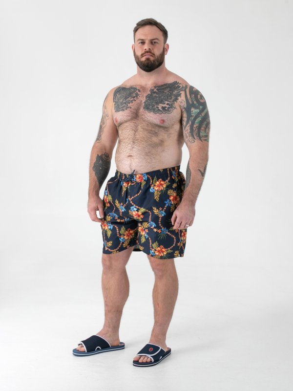 Make a splash this summer with the D555 DAWSON AO Printed Hawaiian Swim Shorts – bold style meets ultimate comfort. Designed with an eye-catching all-over Hawaiian print, these shorts bring effortless holiday energy wherever you go. Crafted from lightweight quick-dry polyester, they keep you cool and comfortable in and out of the water. The elasticated waistband with drawcord ensures a secure fit, while the back zipper pocket adds practicality for your essentials. Finished in a classic navy base for a stylish, easy-to-wear look.