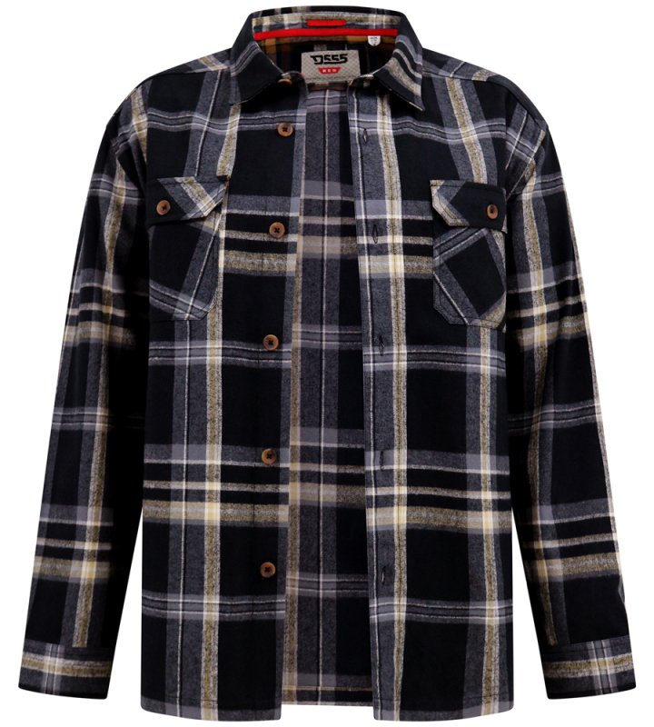 The D555 FALKIRK Long Sleeve Black & Grey Heavy Shacket Overshirt is the perfect hybrid between a shirt and a jacket, providing both warmth and effortless style. Featuring a bold black and grey check pattern, this heavyweight shacket is designed for versatility—ideal for layering over t-shirts, knitwear, or hoodies during cooler seasons. Made from 100% pure cotton, it ensures breathability, softness, and long-lasting durability, making it a staple piece for any casual or outdoor wardrobe.