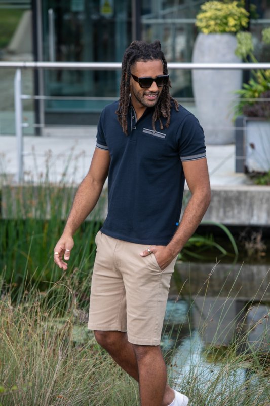 ILKESTON-D555 Jacquard Collar And Cuff Short Sleeve Pique Polo With Chest Pocket