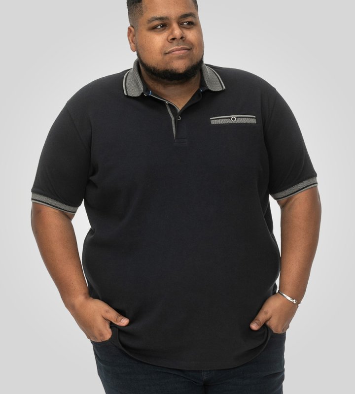 Add sophistication and comfort to your wardrobe with the ILKESTON-D555 Jacquard Collar and Cuff Short Sleeve Pique Polo with Chest Pocket from D555 by The Duke Clothing Co. — where style and practicality meet.
