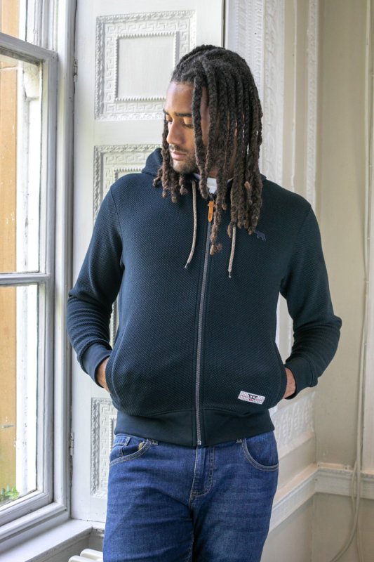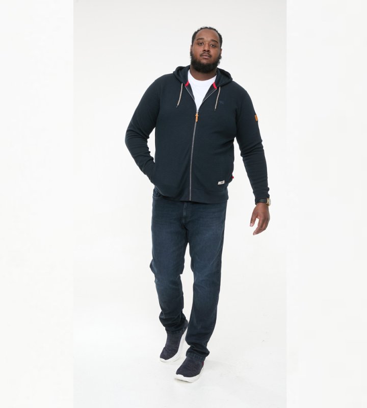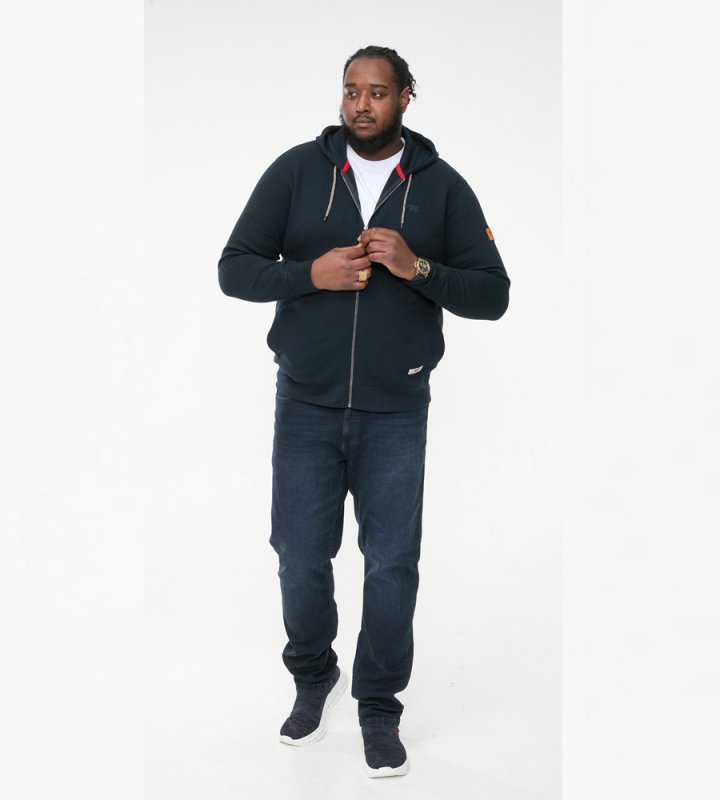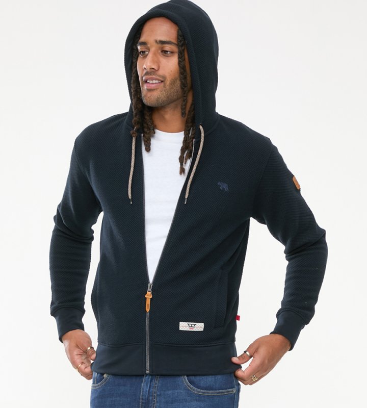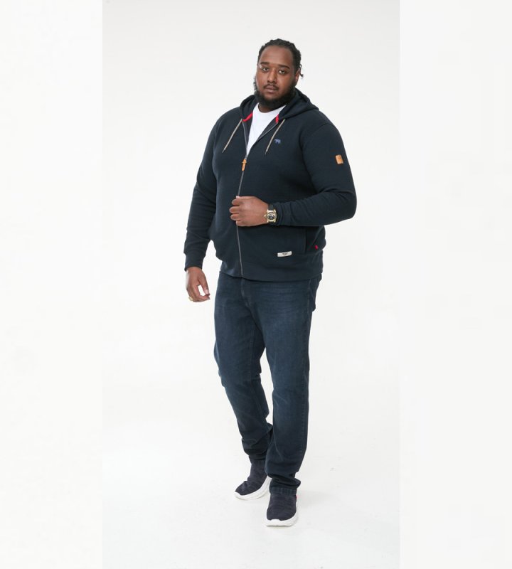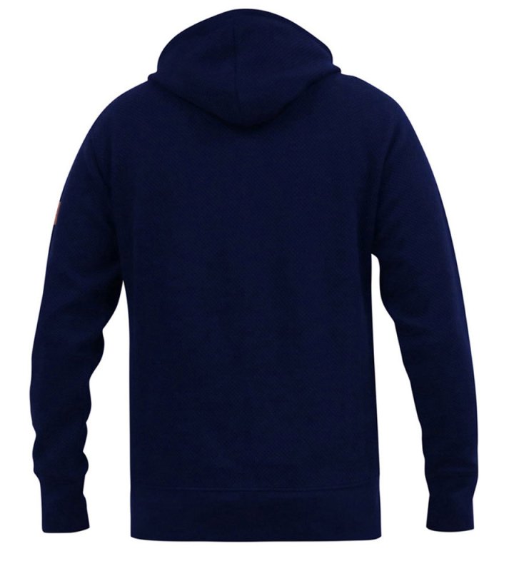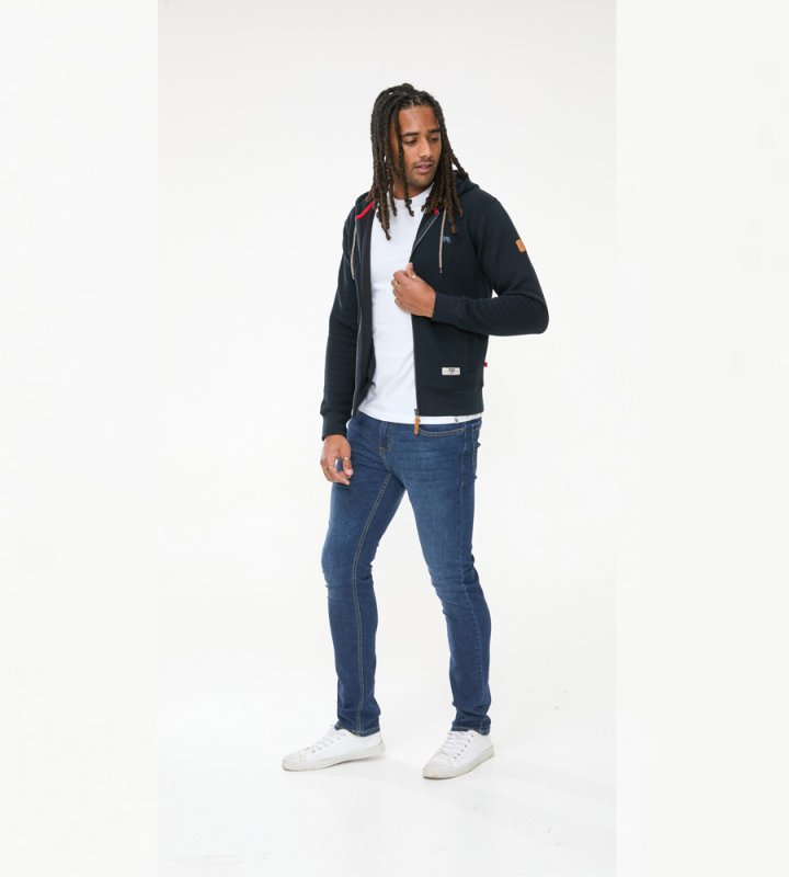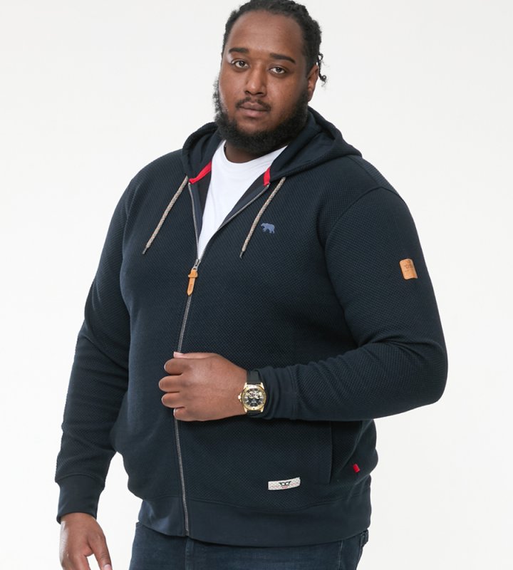 Elevate your casual look with the IRVIN - D555 Full Zip Jacquard Hoody in a classic navy hue. Crafted from a comfortable cotton-polyester blend, this hoody stands out with its intricate jacquard design and chest embroidery, adding a touch of sophistication to your wardrobe.