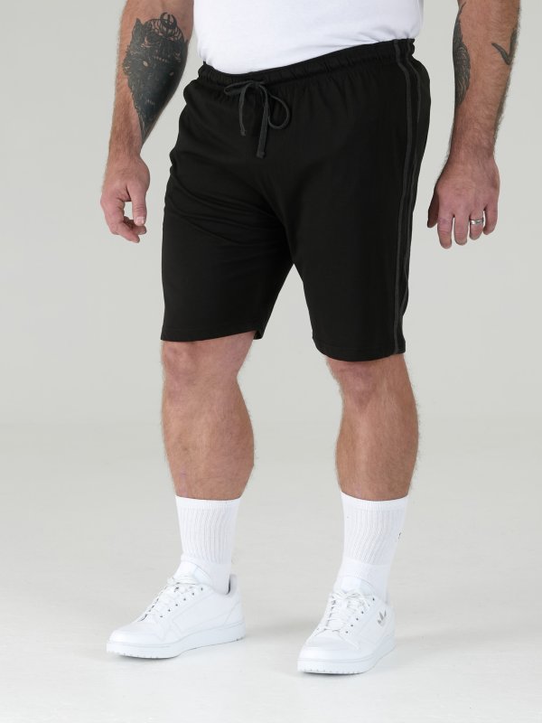 In summary, the Duke Clothing Co "RYAN-D555 Two Pack Elasticated Waist Jersey Short With Side Stripes" is a high-quality and stylish men's short made from a cotton-polyester blend, with 60% cotton and 40% polyester. They come in a pack of two and feature an elasticated waistband with a drawstring, two side pockets, a regular fit, and side stripes. The black/charcoal color combination adds a sleek and modern touch to their classic design, making them a versatile addition to any wardrobe. These shorts are perfect for casual occasions, adding a unique and stylish element to any outfit.