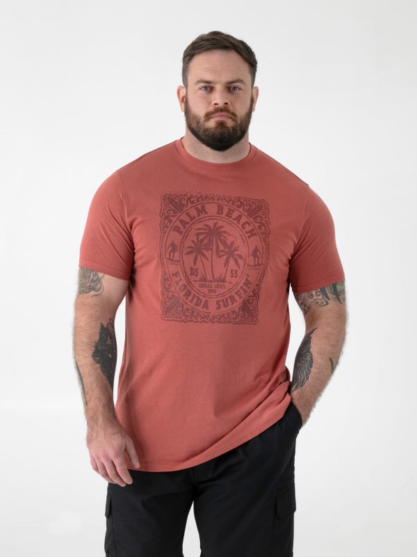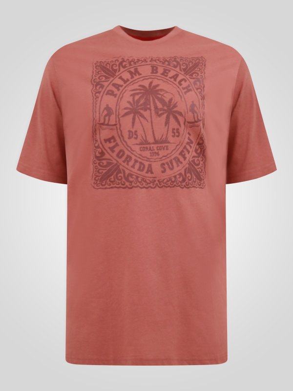 Ride the wave of easy summer style with the D555 TITCHMARSH Florida Surfin’ Tonal Printed Crew Neck T-Shirt – relaxed, bold, and built for comfort. Crafted from pure cotton, this tee offers natural breathability and a soft hand feel, making it perfect for all-day wear. The tonal surf-inspired chest print gives it a subtle yet confident edge, while the brick red colourway adds warmth and character to any outfit. A classic crew neck design and relaxed fit complete the look, combining effortless comfort with standout casual appeal.