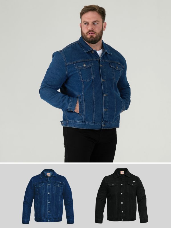 The Duke Clothing Co is a brand under the D555 label that specializes in men's clothing. One of their products is the "TRUCKER- Duke Western Style Trucker Denim Jackets," which is a jacket made of 100% cotton. The jacket is available in two different colors: Blue Stonewashed and Black. The Blue Stonewashed color has a faded, worn-in look to it, while the Black color is a solid, dark color. The jacket is designed with a western-style trucker cut, which is a classic and timeless design that has been popular for decades. The jacket features a full button-front closure, with metal buttons that have a vintage look to them. The jacket has a pointed collar, which is also a classic feature of western-style clothing. The collar is made of a contrasting fabric, which adds to the jacket's overall style. The cuffs of the jacket are also buttoned and can be adjusted to fit the wearer's wrists. The jacket has two chest pockets, which are also buttoned, and have a flap closure. The pockets are large enough to hold small items like keys, phones, or wallets. The jacket has two side pockets as well, which are perfect for keeping hands warm. The jacket is made of 100% cotton, which means it is soft and comfortable to wear. The denim material is durable and will last a long time, even with frequent wear. The jacket can be machine washed and dried, which makes it easy to care for. Overall, the TRUCKER- Duke Western Style Trucker Denim Jacket is a stylish and practical choice for men who are looking for a classic denim jacket that will last for years. The western-style design and the high-quality materials make it a great addition to any wardrobe.