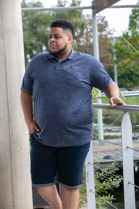 With sizes ranging from Small to 8XL, this polo is designed to offer a comfortable and flattering fit for a variety of body types. The denim color serves as a versatile backdrop for the bold leaf print, creating a cool, laid-back look that pairs easily with jeans, shorts, or chinos.