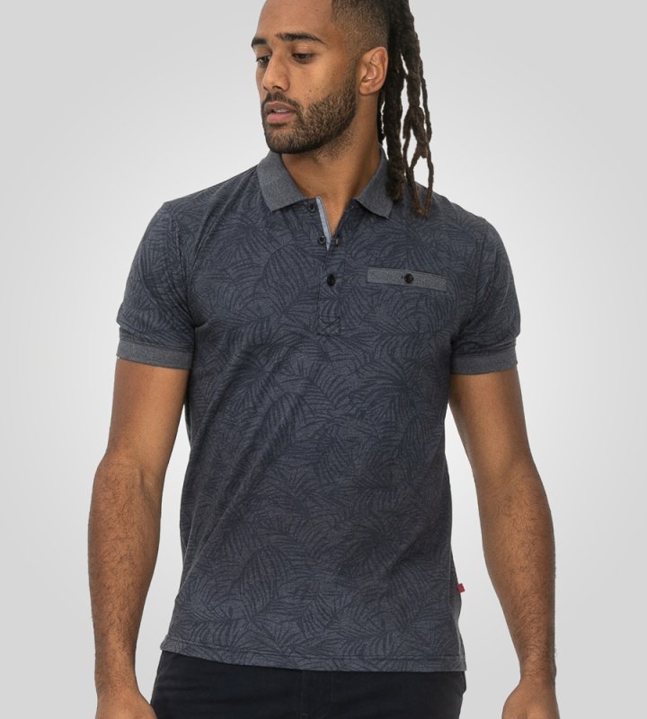 UTTOXETER-D555 AOP Leaf Print Short Sleeve Polo