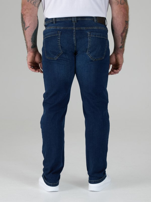 AMBROSE-D555 Tapered Fit Stretch Jeans in Dark Blue Stonewash