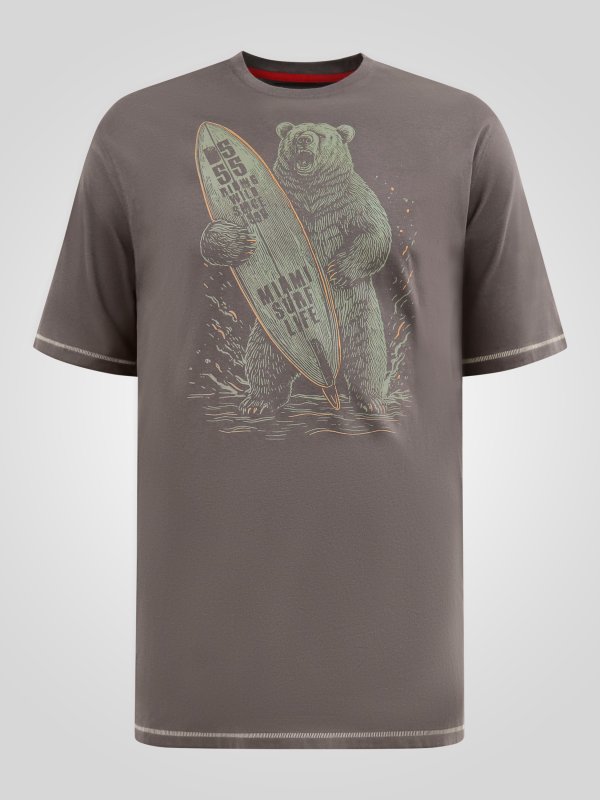 AUSTIN-D555 Surfing Bear Printed Crew Neck T-shirt