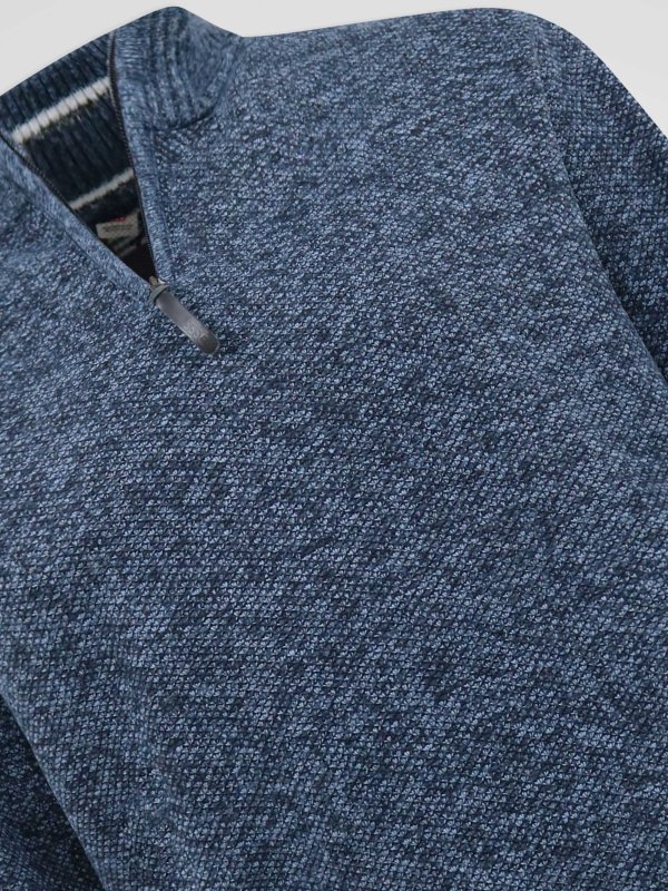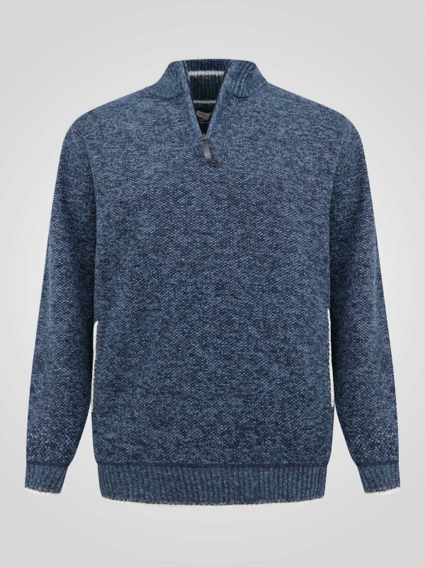 CALEB-D555 1/4 Zip Knitted Jumper With Bonded Check Lining & Lower Pockets