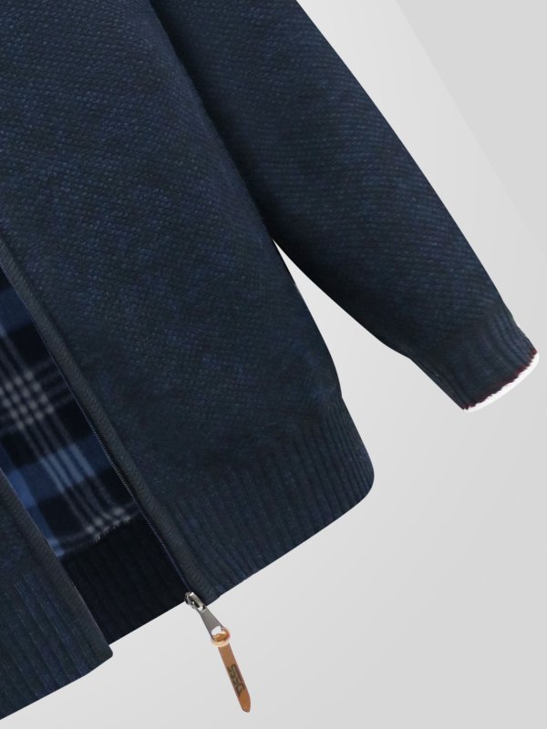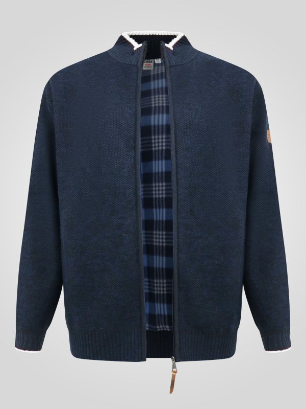 CESAR 1-D555 Navy Knitted Zip Through With Bonded Check Lining & Lower Pockets