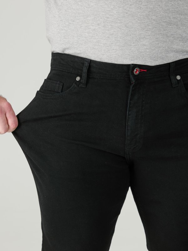 In conclusion, The Duke Clothing Co's "CLAUDE-D555 Tapered Fit Stretch Jeans In Black" is a stylish and comfortable pair of jeans made from a blend of 98% cotton and 2% elastane. It's a great choice for those who are looking for a versatile and flexible pair of jeans that can be dressed up or down. The tapered fit, stretchy fabric, and black color make it a standout piece in your wardrobe.