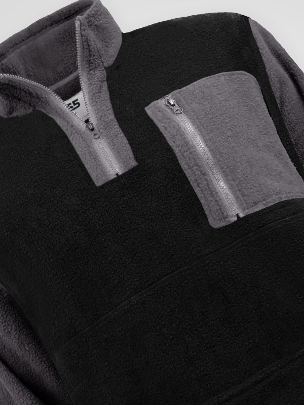 DALY-D555 1/4 Zip Neck Bonded Fleece Sweatshirt With Kangaroo & Chest Pockets