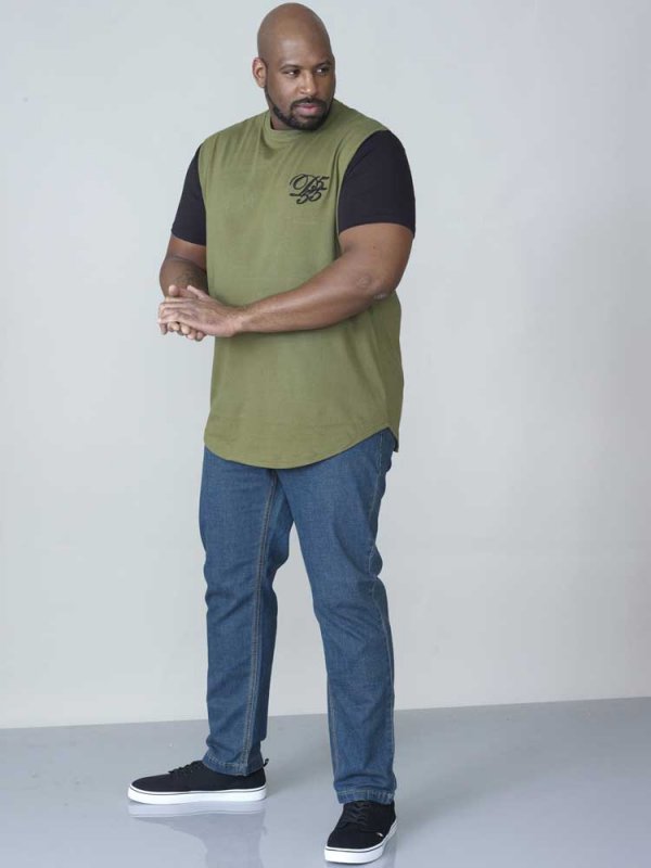 DEMARCUS-D555 Couture T-Shirt With Curved Hem, Contrast Sleeves And Chest Embroidery" is a men's t-shirt designed and made by the Duke Clothing Co under the D555 brand.
