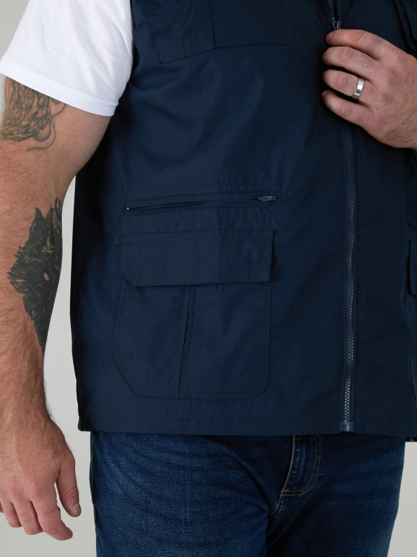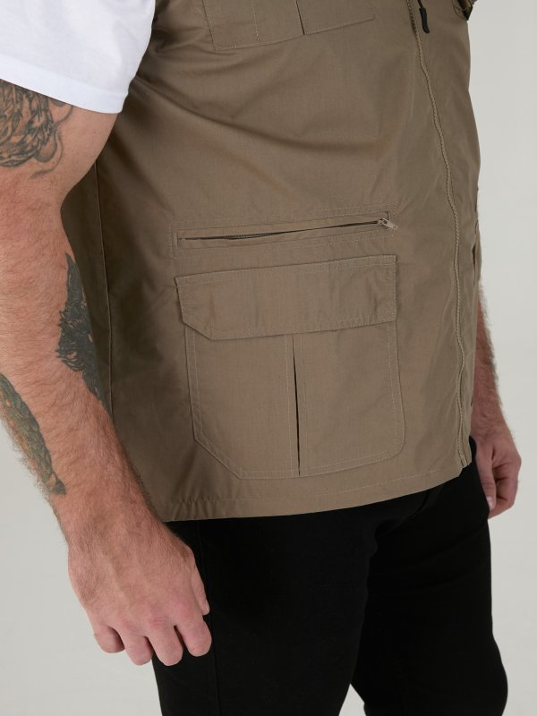 Made from a durable blend of 65% polyester and 35% cotton material, this waistcoat is rugged, comfortable, and easy to care for. It features multiple pockets, including four front pockets, two zip pockets, and an inner pocket, providing ample storage space for any outdoor activities.