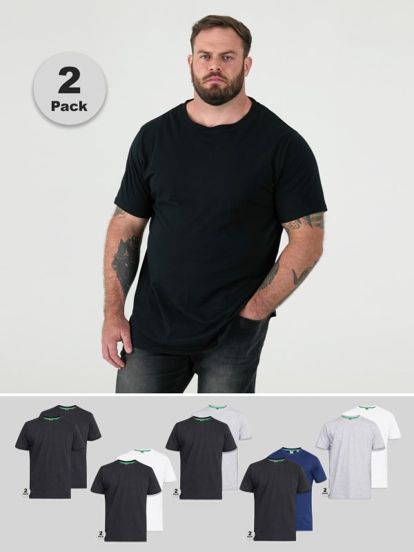 The pack includes two t-shirts in different colors or designs, providing a versatile and practical option for any wardrobe. The t-shirts are available in a range of sizes to fit different body types.