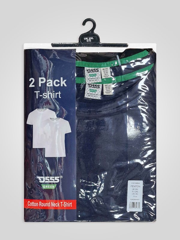 FENTON-D555 Pack Of 2 T-shirts" is a set of two men's t-shirts designed and made by the Duke Clothing Co under the D555 brand. Both t-shirts are made from 100% cotton material, making them soft, breathable, and easy to care for. They feature classic crew necklines and short sleeves, providing a comfortable and casual look. The pack includes two t-shirts in different colors or designs, providing a versatile and practical option for any wardrobe. The t-shirts are available in a range of sizes to fit different body types. The "FENTON-D555 Pack Of 2 T-shirts" can be worn as a casual and practical t-shirt for any occasion. The 100% cotton material makes them soft and breathable, while the pack of two offers a convenient and versatile option for any outfit. Overall, this pack of two t-shirts is a great choice for men who want a comfortable and practical t-shirt set. The 100% cotton material makes them soft and breathable, while the pack of two offers a convenient and versatile option for any wardrobe.