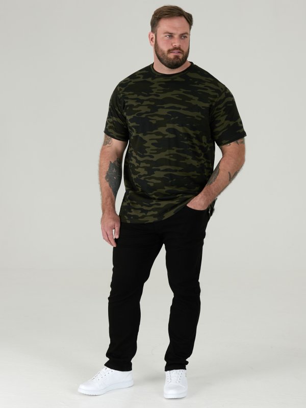 The Duke Clothing Co "GASTON-D555 Camouflage Print T-Shirt" is a men's t-shirt made by the D555 brand. The t-shirt is designed with a bold and eye-catching camouflage print that is located on the front and back of the shirt. The print is designed to be both stylish and unique, making the t-shirt stand out.