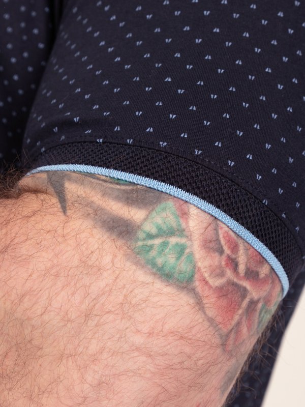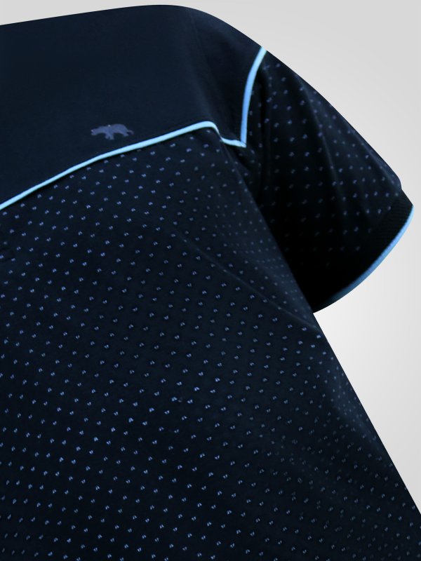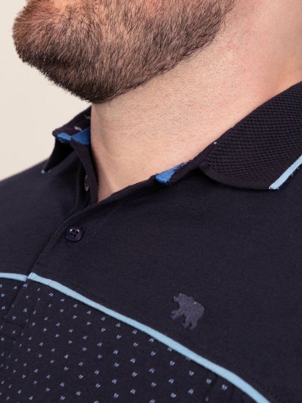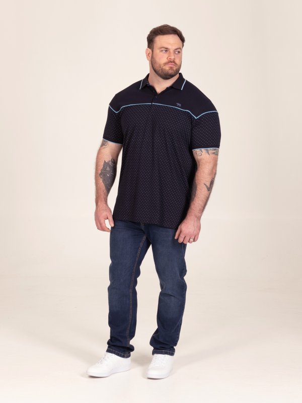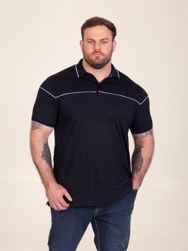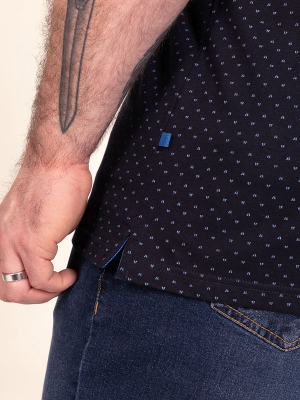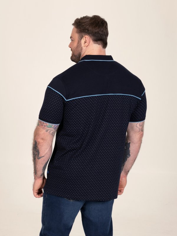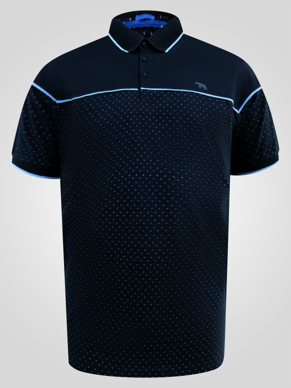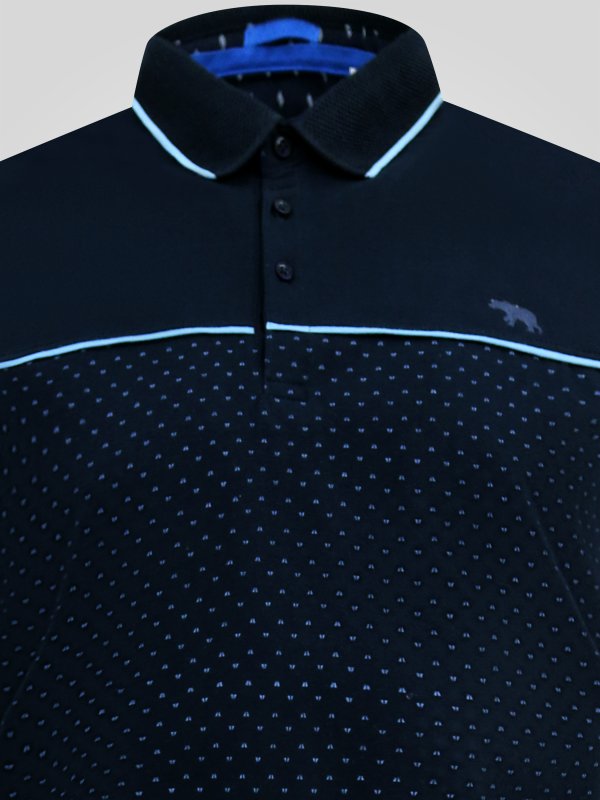GODFREY-D555 Navy Polo With Lower Body AOP And Blue Piping And Jacquard Collar & Cuffs