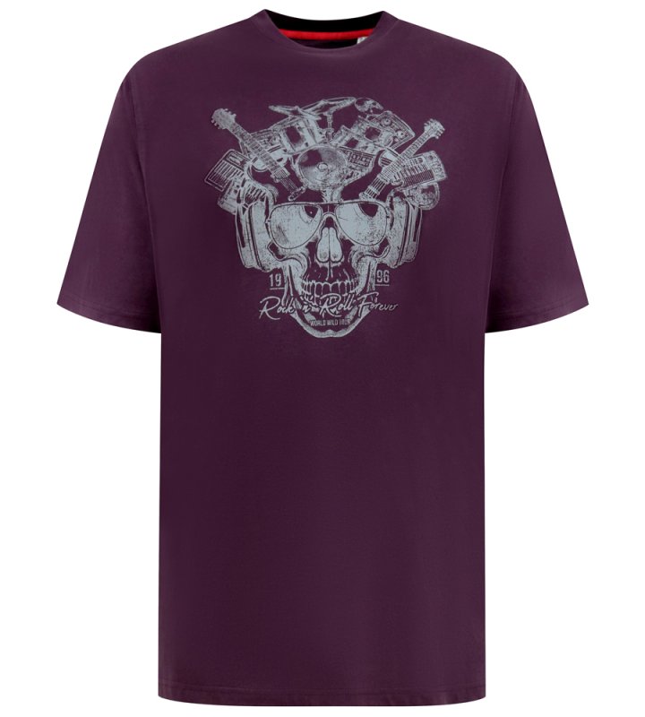 Unleash your inner rocker with the D555 GRIMSBY Rock 'n' Roll Skull Printed Crew Neck T-Shirt. Featuring a bold skull graphic with a rock 'n' roll twist, this burgundy t-shirt is perfect for music lovers, festival-goers, and those who love edgy streetwear. Made from 100% pure cotton, it ensures softness, breathability, and all-day comfort while making a bold statement.