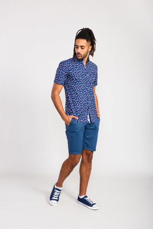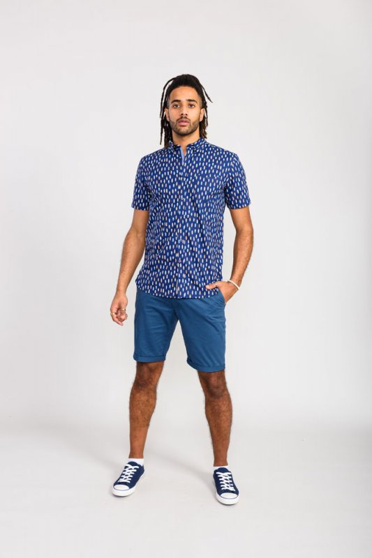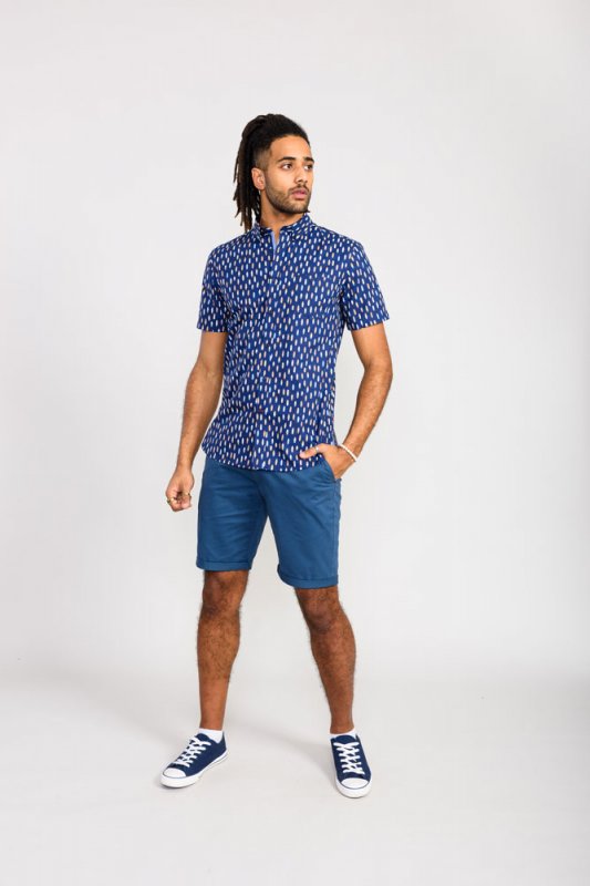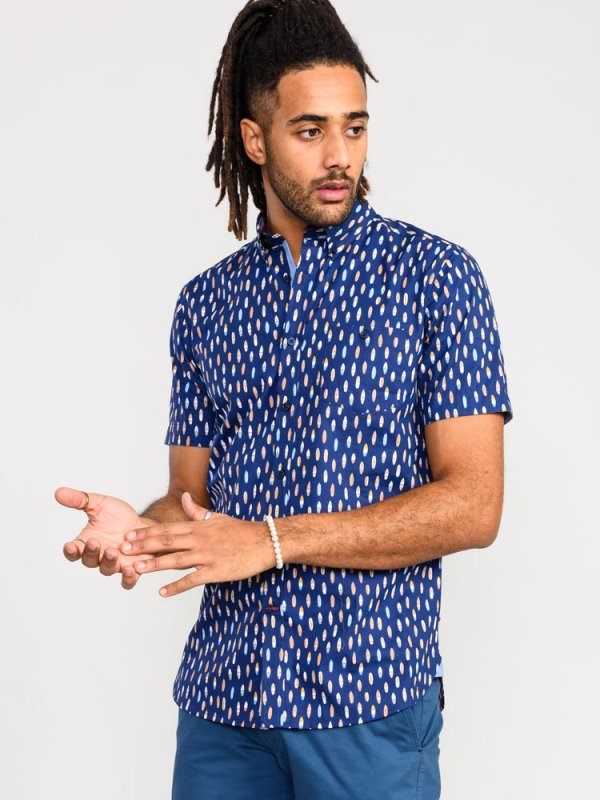 This shirt is made from 100% cotton, which makes it lightweight, breathable, and comfortable to wear in hot weather. The shirt features a button-down collar and short sleeves, making it perfect for casual occasions, such as beach outings or barbecues. The shirt is available in a navy blue color with a surfboard print all over, giving it a fun and playful vibe.