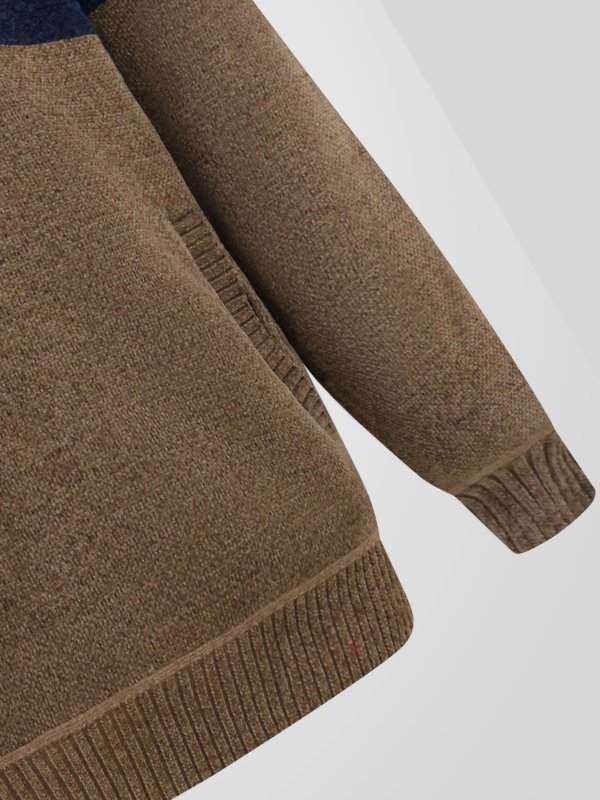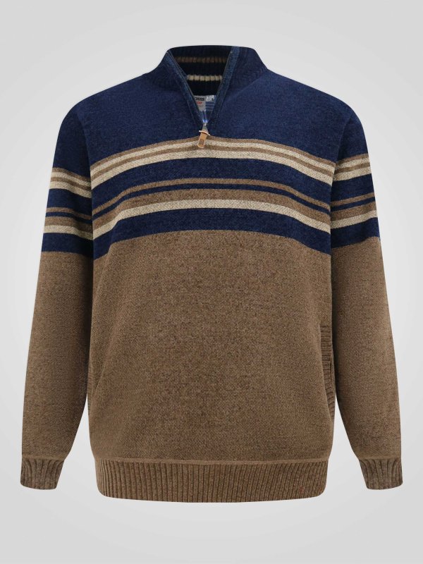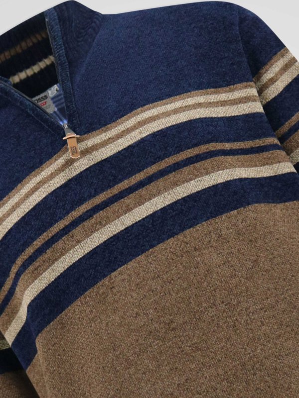 HEATH-D555 1/4 Zip Stripe Chenille Jumper With Bonded Check Lining & Lower Pockets