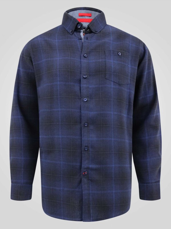 HIGGINS-D555 Navy Check Shirt With Chest Patch Pocket & Button Down Collar