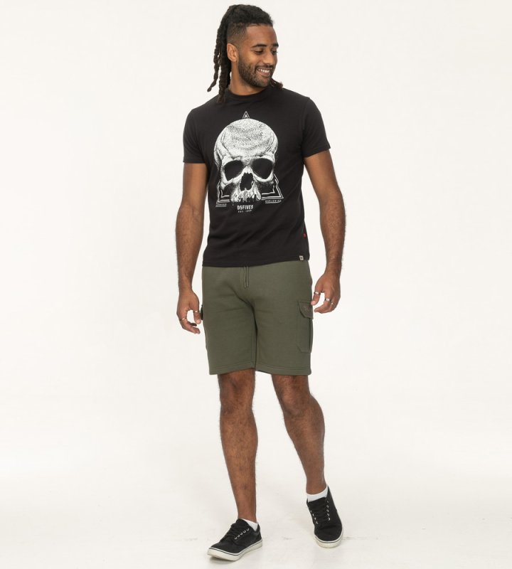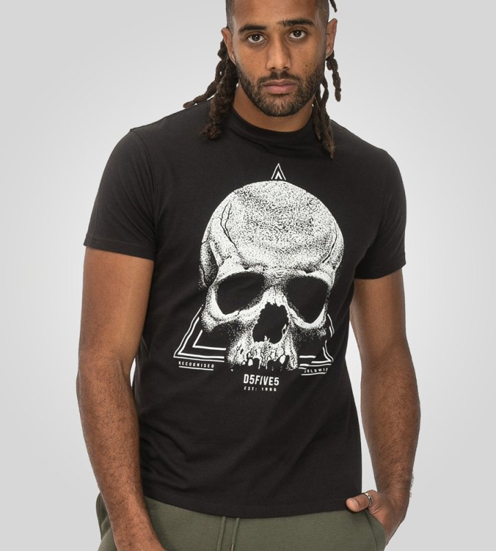 HUCKNALL-D555 Skull Monochrome Printed Crew Neck T-Shirt