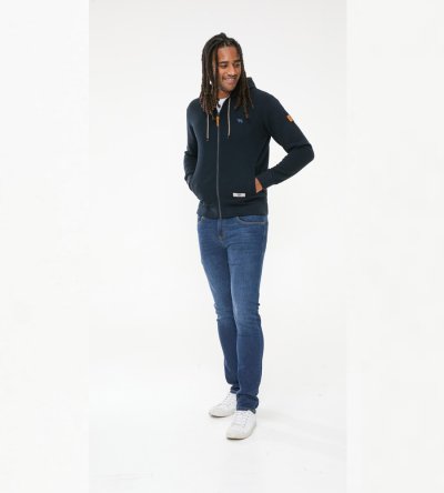Elevate your casual look with the IRVIN - D555 Full Zip Jacquard Hoody in a classic navy hue. Crafted from a comfortable cotton-polyester blend, this hoody stands out with its intricate jacquard design and chest embroidery, adding a touch of sophistication to your wardrobe.
