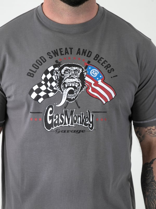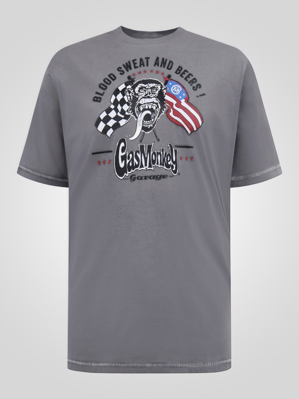JASPER-D555 Official Gas Monkey Printed Crew Neck T-Shirt
