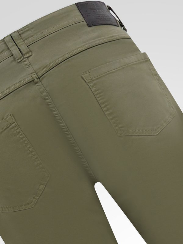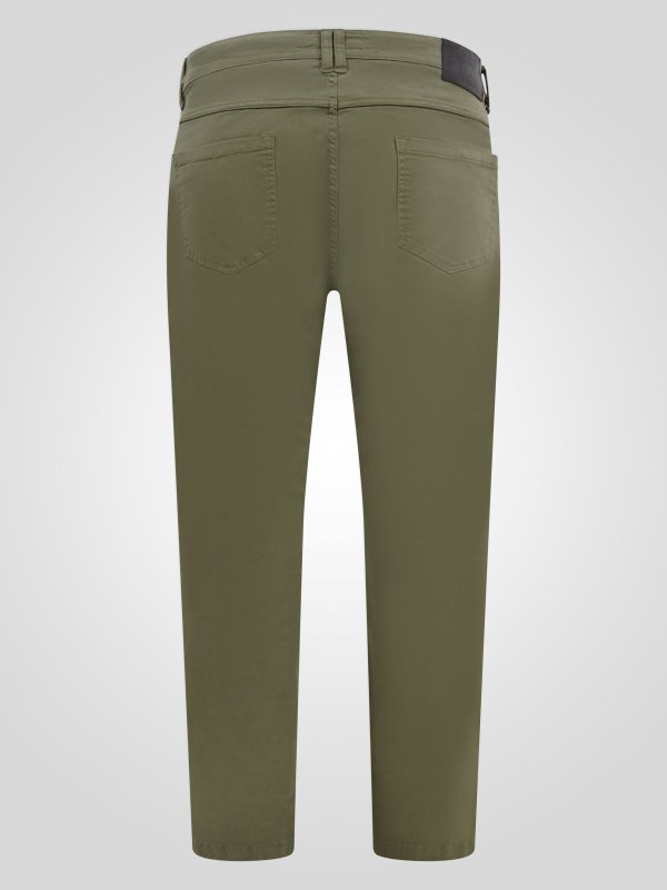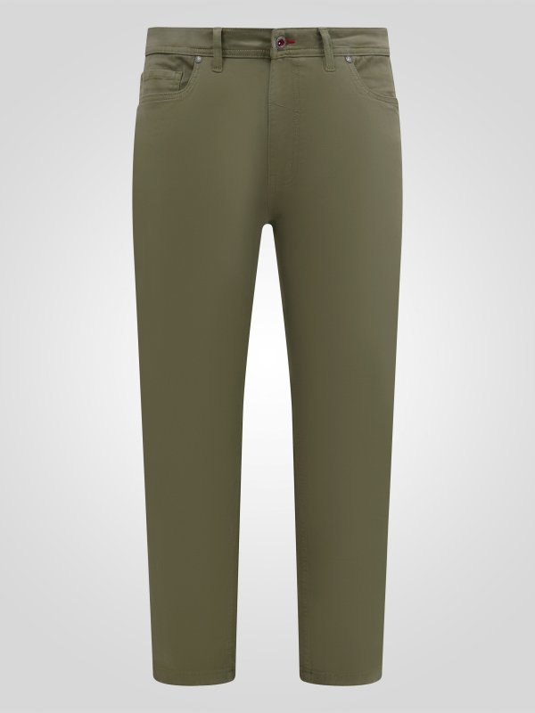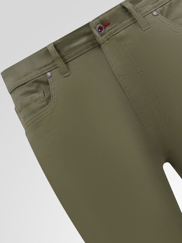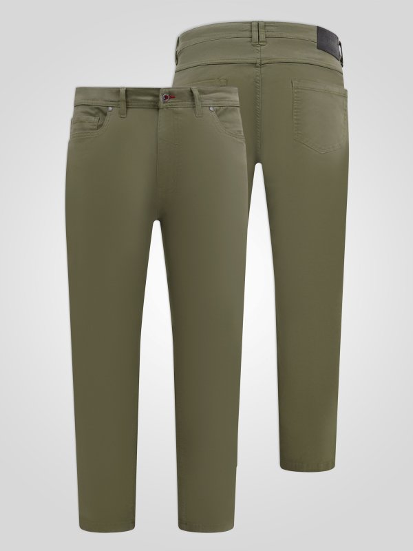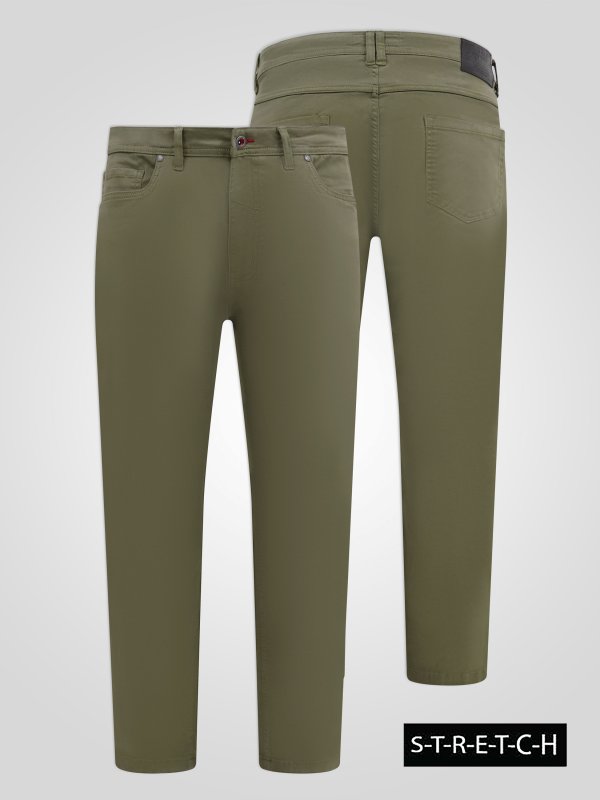 KELVIN 3-Khaki Tapered Fit Five Pocket Stretch Twill Chino With Peach Finish