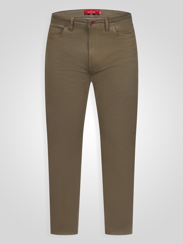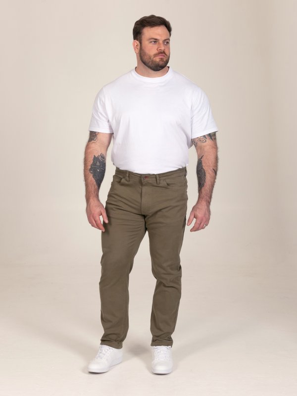 Upgrade your smart-casual wardrobe with the D555 KELVIN 3 Stretch Twill Chino – a versatile essential that combines refined style with everyday comfort. Crafted from a cotton and elastane blend, these chinos offer a soft feel with added stretch for ease of movement, while the peach finish delivers a smooth, premium touch. The tapered fit creates a modern, streamlined silhouette, and the classic five-pocket design adds practicality with a timeless look. Finished in a versatile khaki colour for effortless styling, they pair easily with both casual and smart outfits, with D555 – a brand by The Duke Clothing Co – known for quality craftsmanship and contemporary styling in extended size ranges.