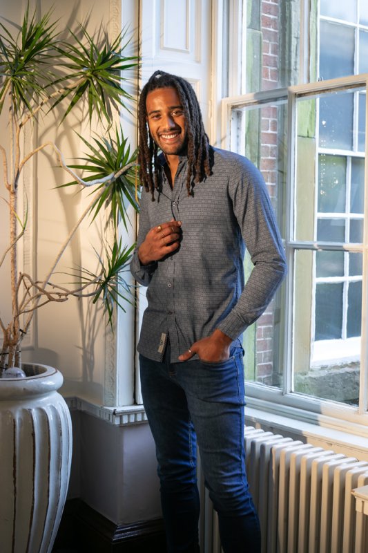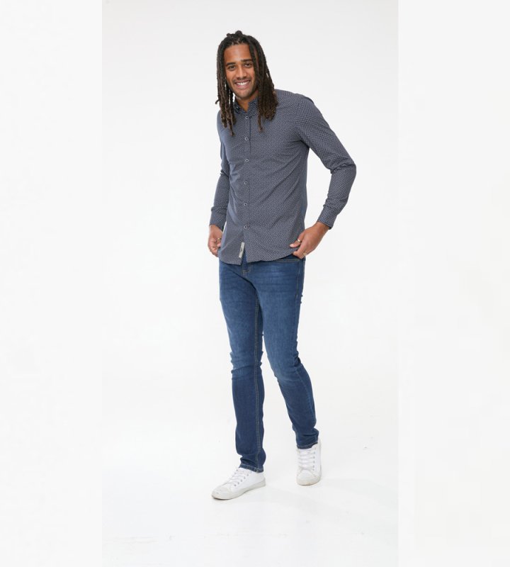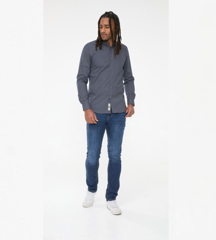 MORGAN-D555 L/S Micro AOP Shirt With Concealed Button Down Collar Shirt