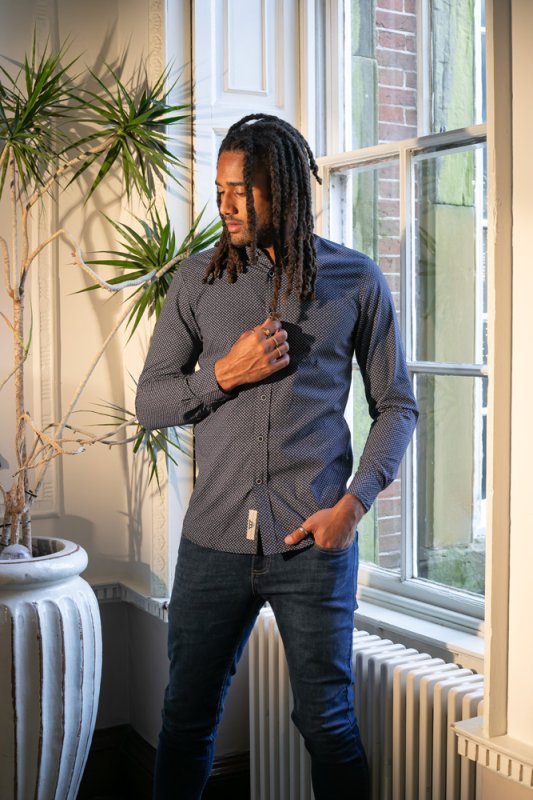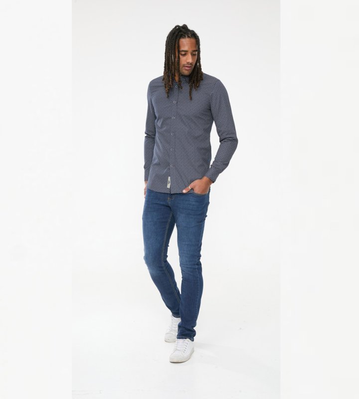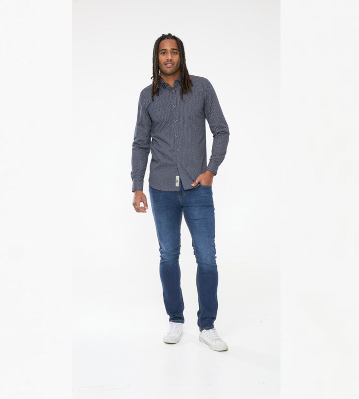 The MORGAN - D555 Long Sleeve Shirt is a stylish addition to any wardrobe, featuring a micro all-over print that adds a touch of sophistication. The concealed hidden button-down collar provides a sleek profile, while the 100% cotton fabric ensures comfort and durability. Colour navy makes it a versatile piece for both formal and casual occasions.